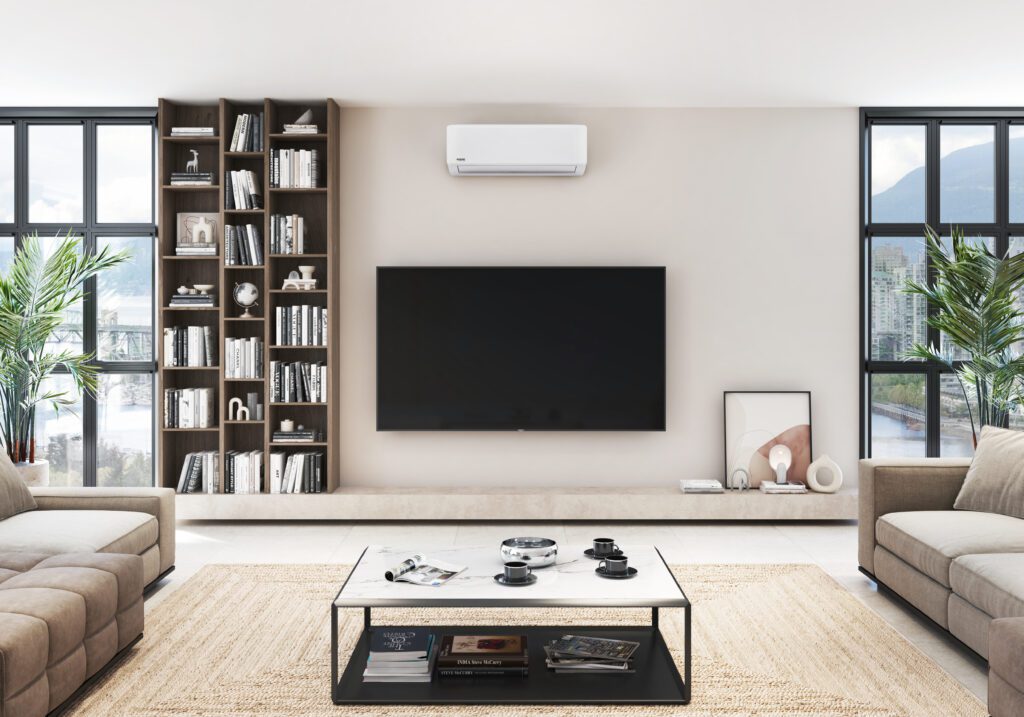 El aire acondicionado tradicional genera corrientes de aire, puntos fríos y calientes, y ruido constante. Además, solo funciona en verano.